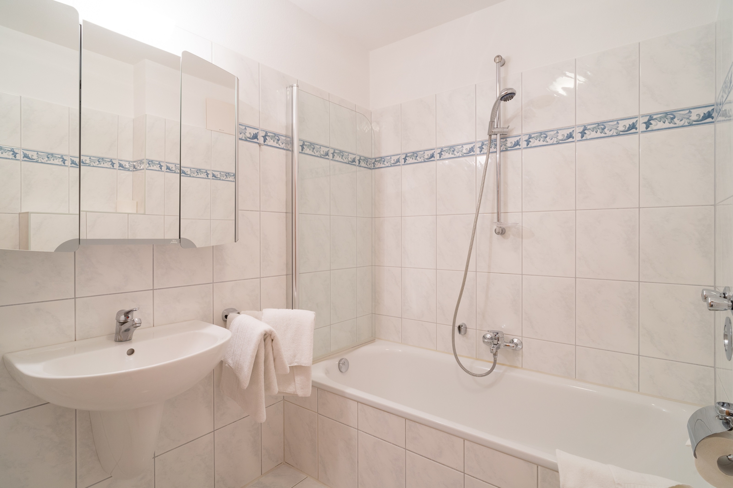 Kostenfreier Tiefgaragenstellplatz (2,05 m), Fahrradabstellmöglichkeit sowie Waschmaschine und Trockner (gegen Gebühr) vorhanden.