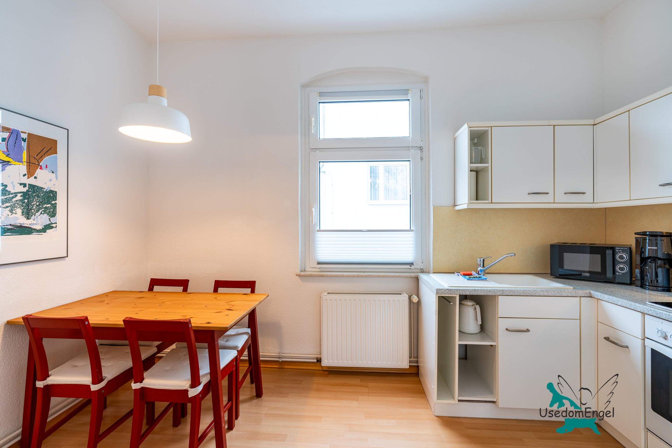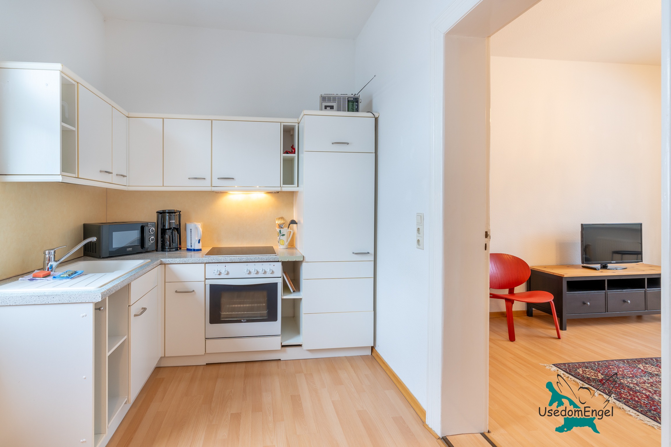Die Ferienwohnung 04 im ersten Obergeschoss bietet mit 56 qm Platz für bis zu vier Personen; sie ist großzügig, hell und sehr geräumig – eben die perfekte Wohnung für einen Urlaub;