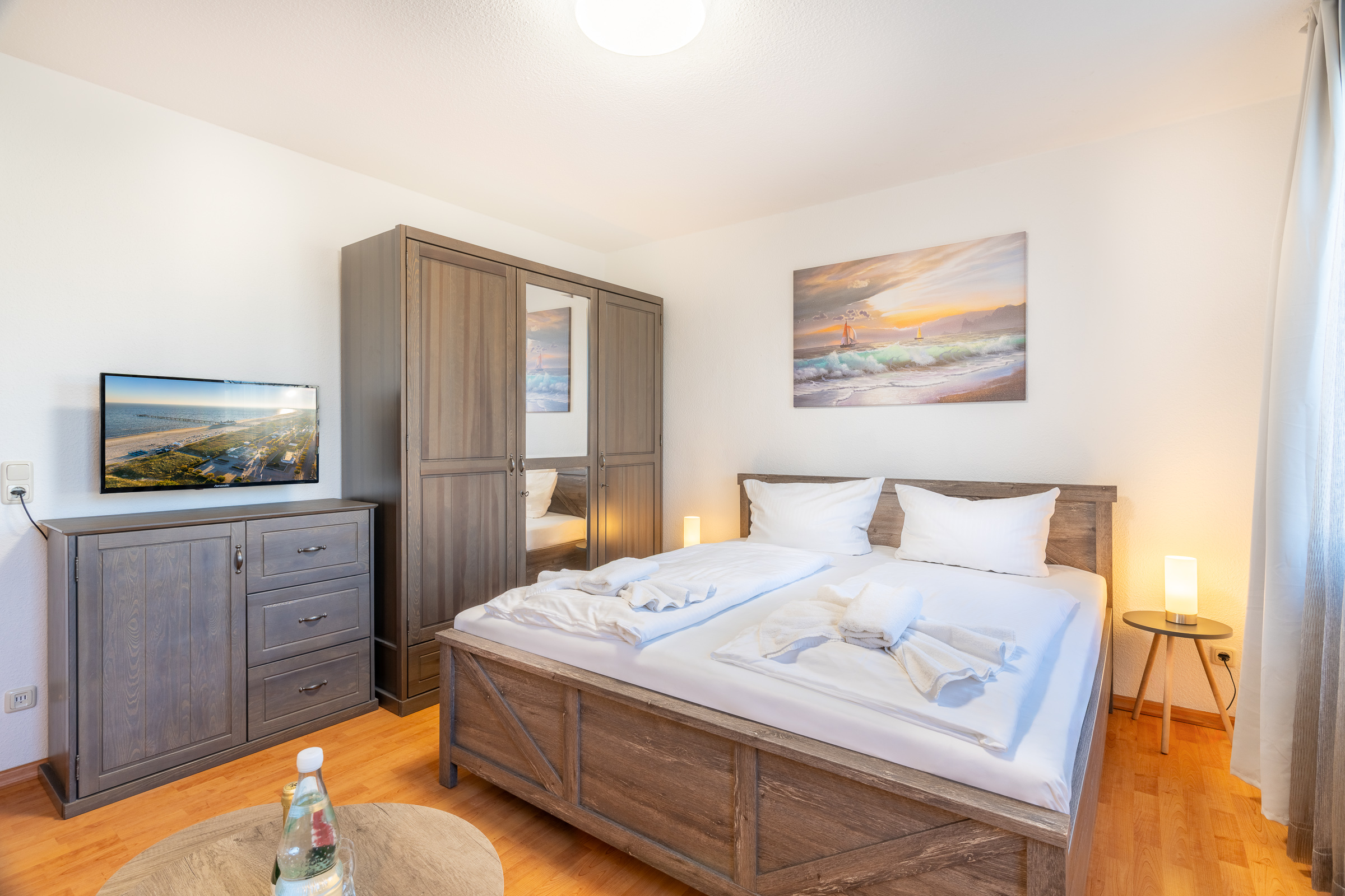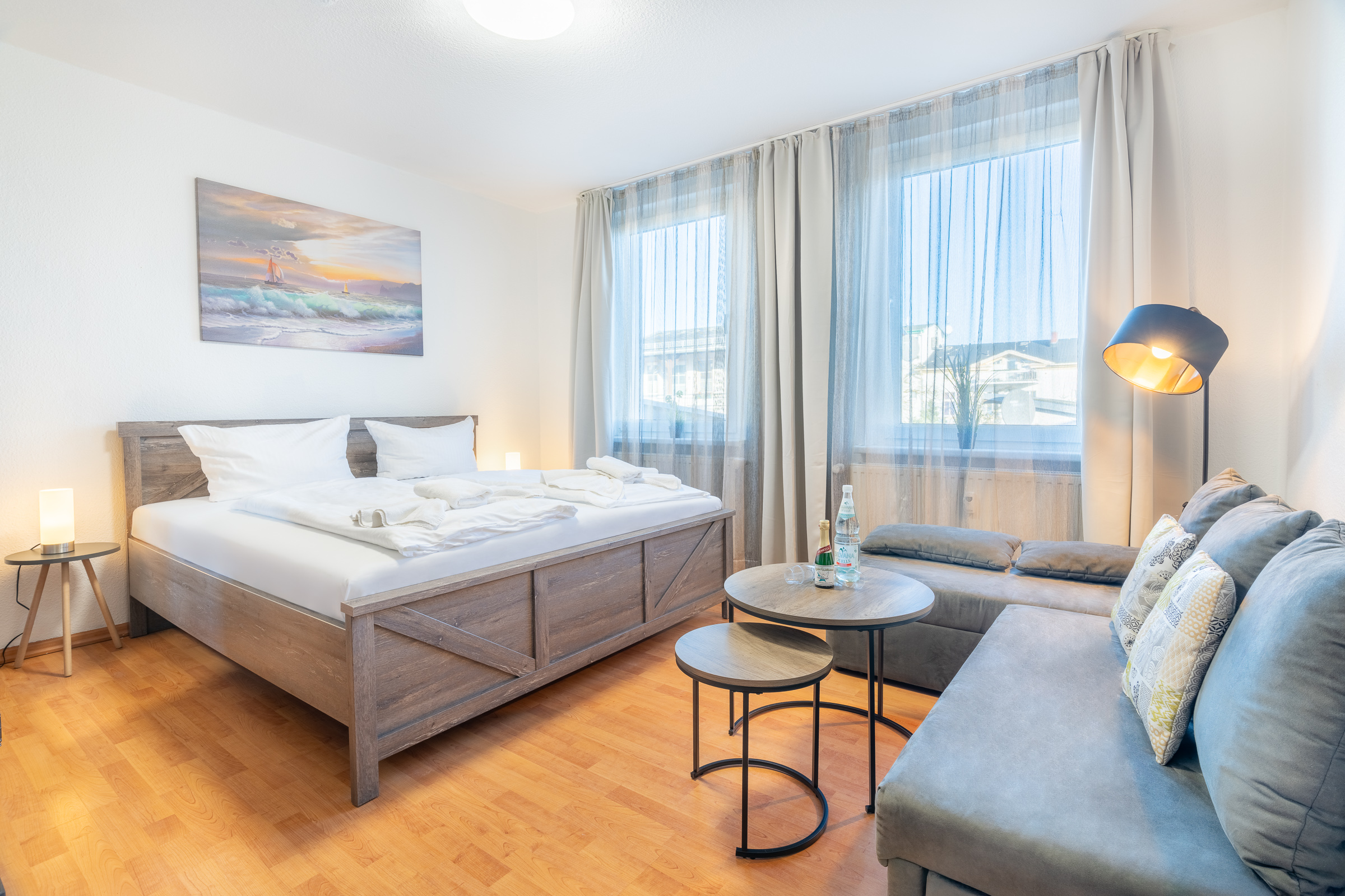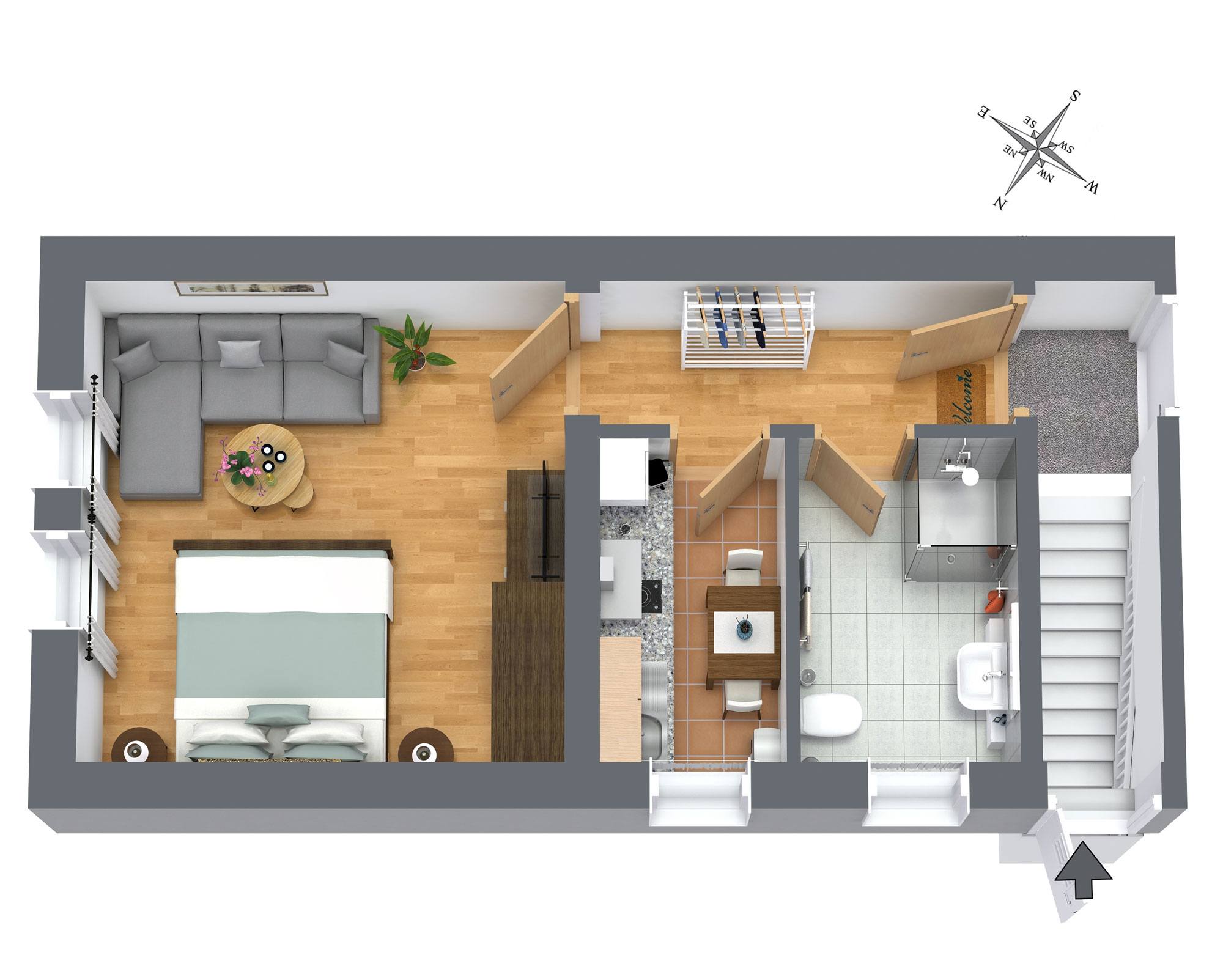 Die 30 qm große Ein-Raum-Ferienwohnung im ersten Obergeschoss gehört zu den UsedomEngel Ferienwohnungen und befindet sich nur ca. vier Gehminuten vom Strand entfernt. Die Wohnung ist mit einem Doppelbett, Essplatz, separate Küche und Bad mit Dusche und WC ausgestattet.