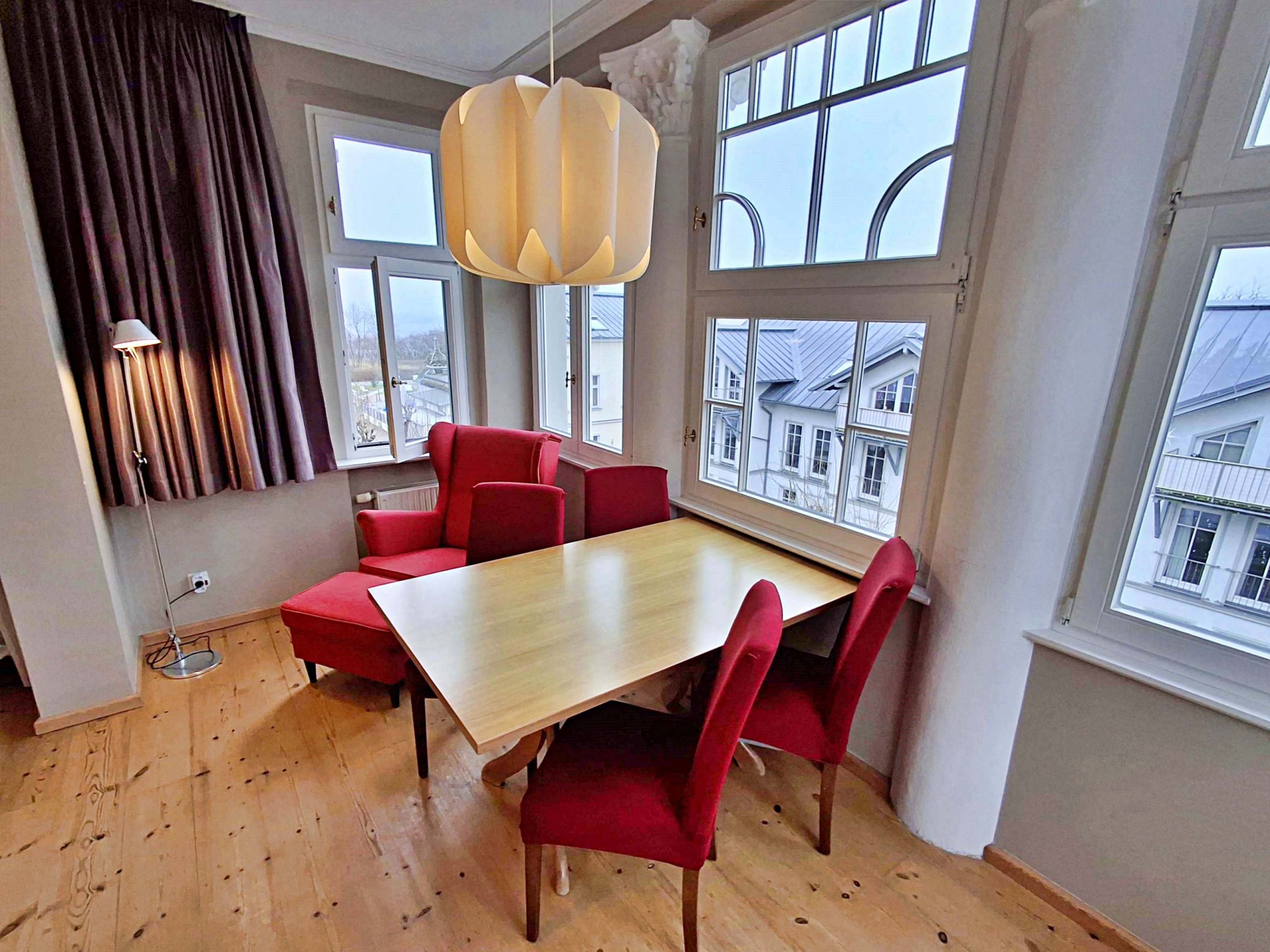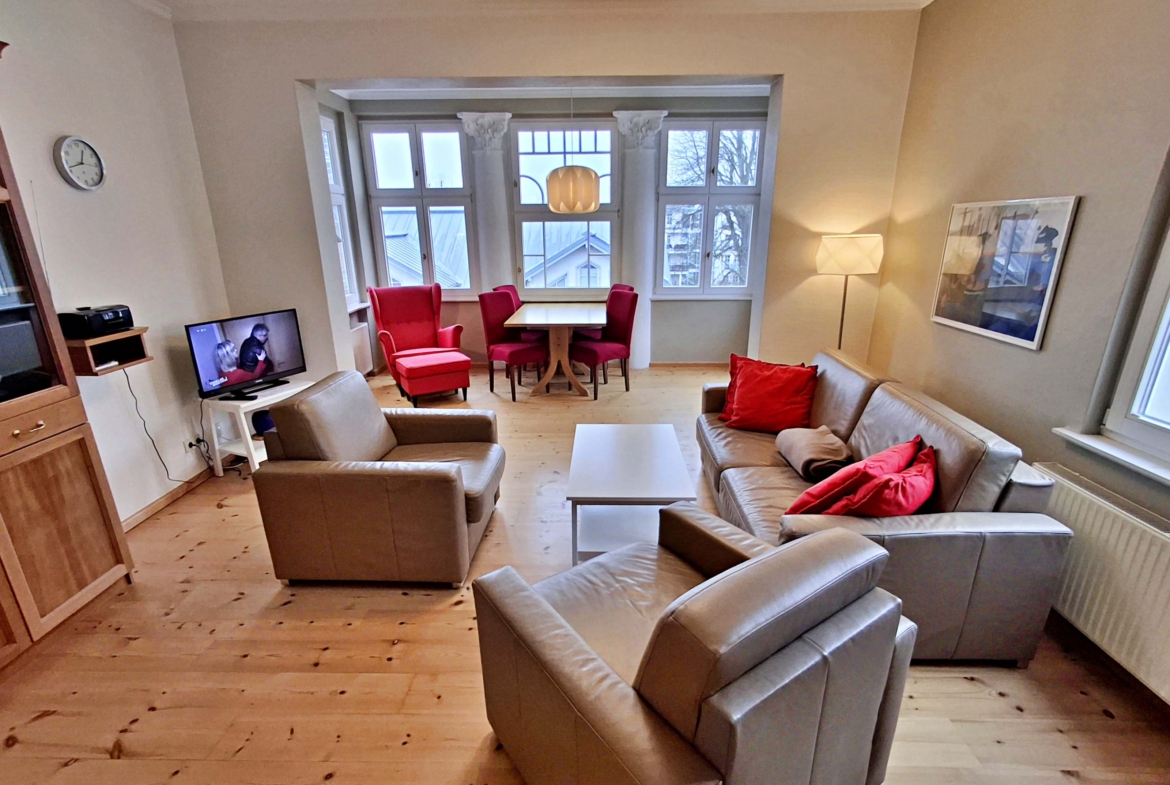 Die helle 3-Zimmer-Ferienwohnung im Seebad Ahlbeck auf Usedom bietet Platz für bis zu 4 Erwachsene und 1 Kleinkind (bis 3 Jahre) und liegt im 2. Obergeschoss der stilvollen Villa Ahlbeck, nur wenige Schritte von Strand und Promenade.
