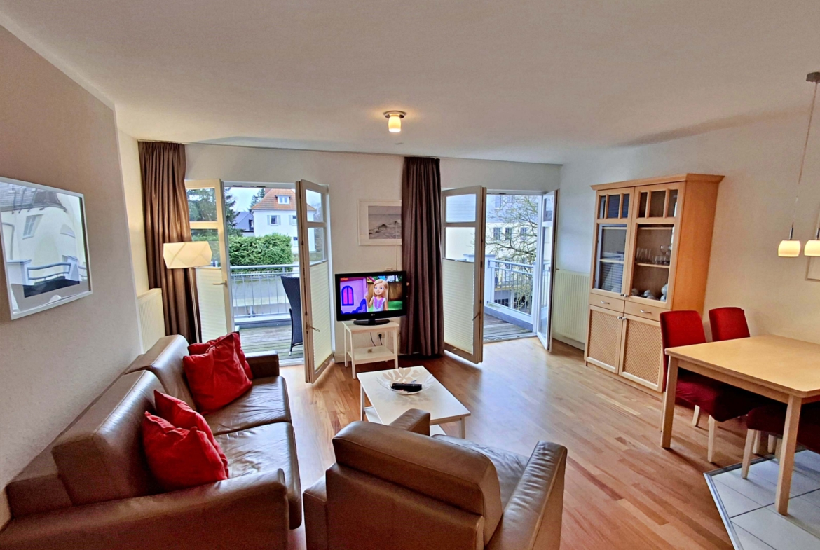 Die 3-Zimmer-Wohnung „Strandkrabbe“ im 3. Obergeschoss (Nebengebäude der Villa Ahlbeck) bietet Platz für bis zu 5 Erwachsene und 1 Kleinkind bis 3 Jahre – nur wenige Schritte von Promenade und Strand entfernt.