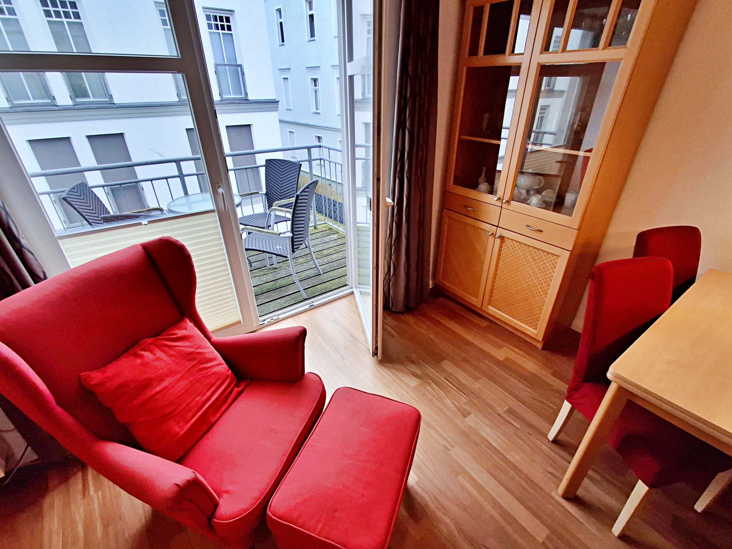 Helle Ferienwohnung Silbermöwe im 2. Obergeschoss des Nebengebäudes der Villa Ahlbeck, nur wenige Schritte von Promenade und Ostseestrand. Für bis zu 4 Erwachsene und 1 Kind (bis 14Jahre).